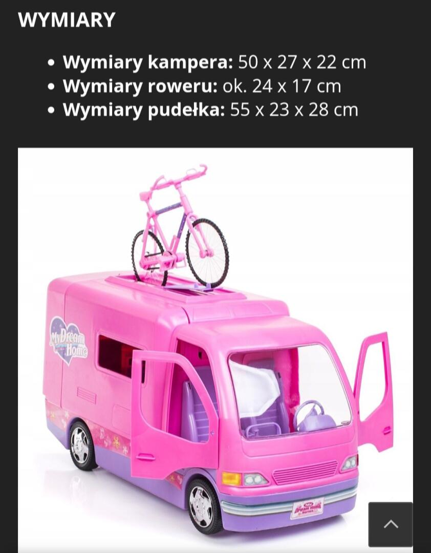 Kamper dla lalek barbie, rower i akcesoria ,duży samochód bus do kupienia w Grajewie