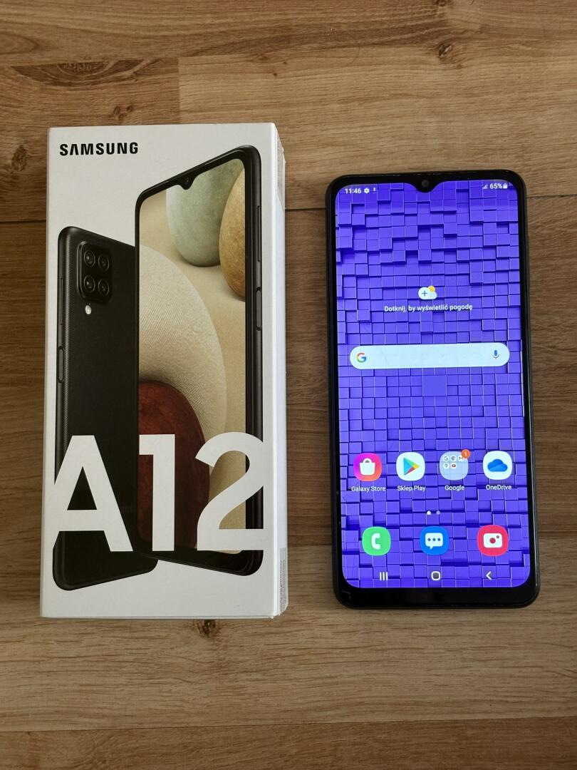 Sprzedam telefon Samsung A12, bateria trzyma bardzo długo, jedyny mankament to drobne pęknięcie na wyswietlaczu, ale przy normalnym uzytkowaniu nawet tego nie widać