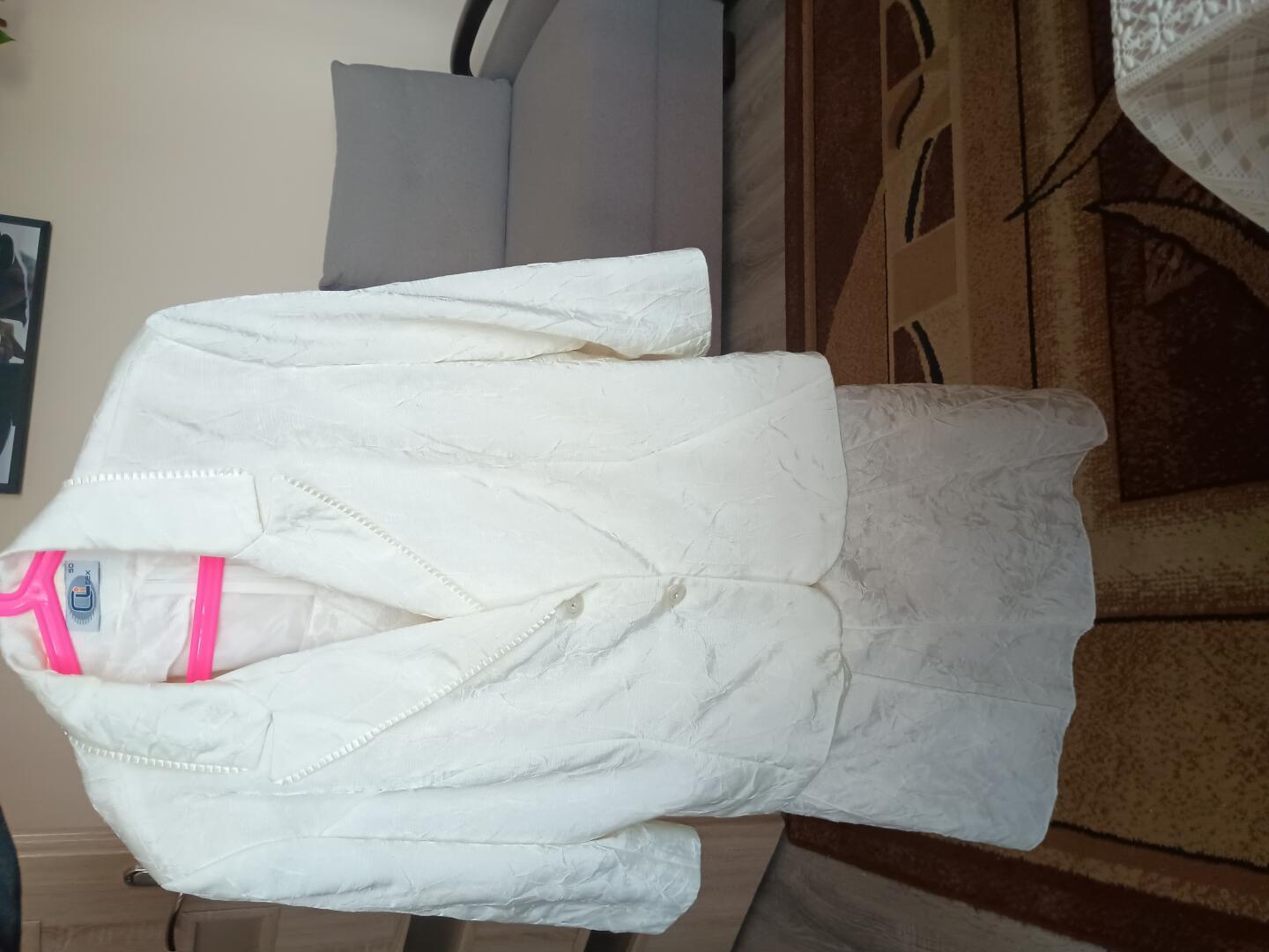 Sprzedam komplet garsonki w składzie jest bluzka marynarka i spódnica rozmiar 50 kolor śmietankowy widoczny na zdjęciu